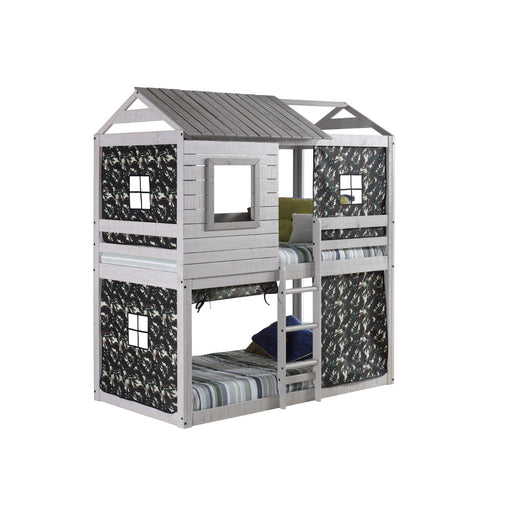 Donco 1370 Twin/ Twin Deer Blind Bunkbed Rustic Light Grey with Green Camo Tent Kit