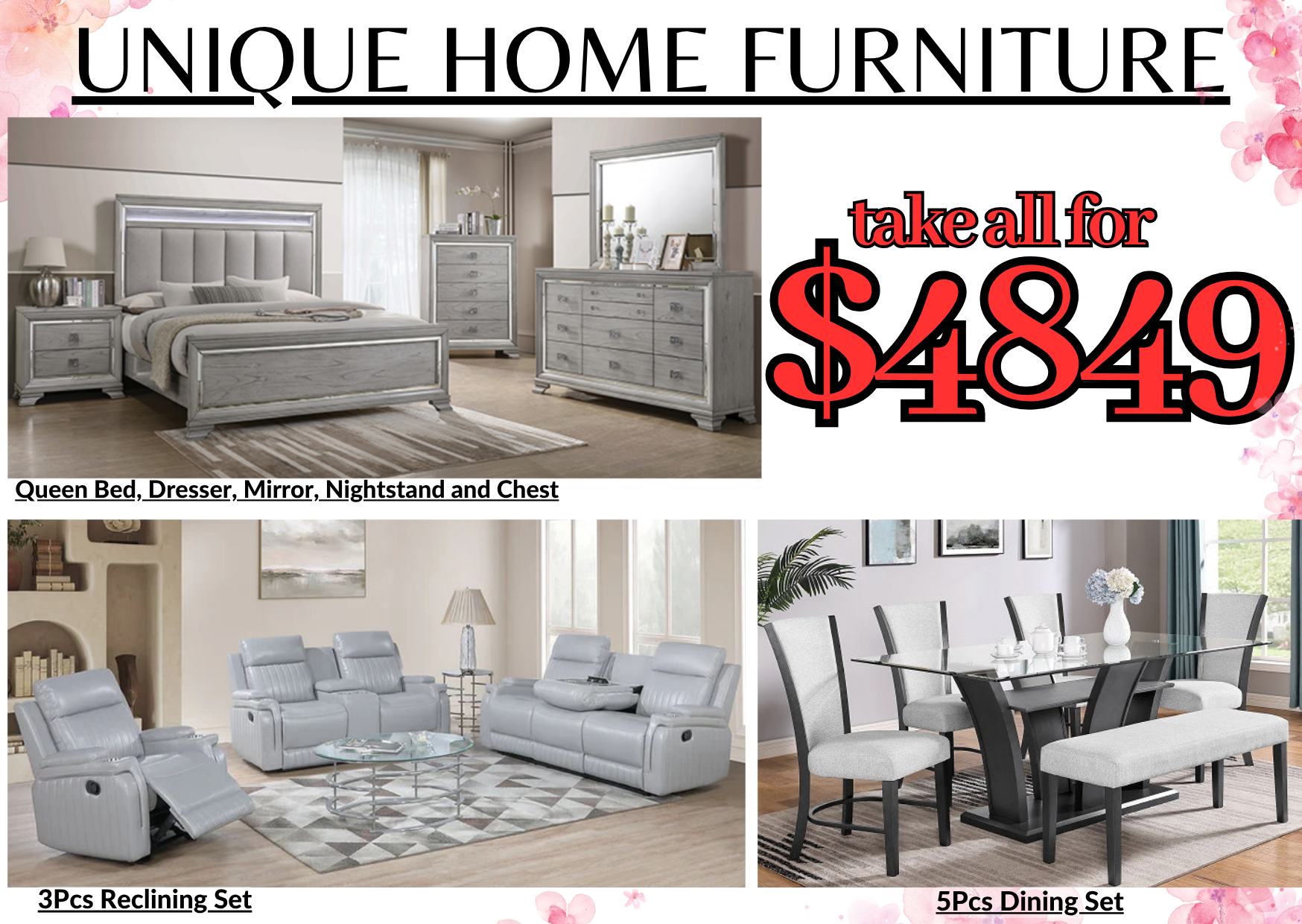 | Queen/king Bedroom Set | Crown Mark B7200 5-Piece Set (Queen /kingBed, Dresser, Mirror, Nightstand, Chest) | Complete bedroom furniture collection with extra storage capacity. |