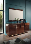In addition to the two different tables, rectangular and round, the Bellagio collection is completed by sideboards with 3 and 4 doors, display cabinet, mirror, bookcase and chairs. All complements can be ordered separately or as a composition, to furnish your whole dining room.