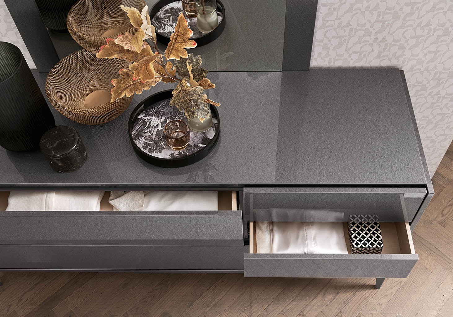 - Striking high-gloss Graphite finish