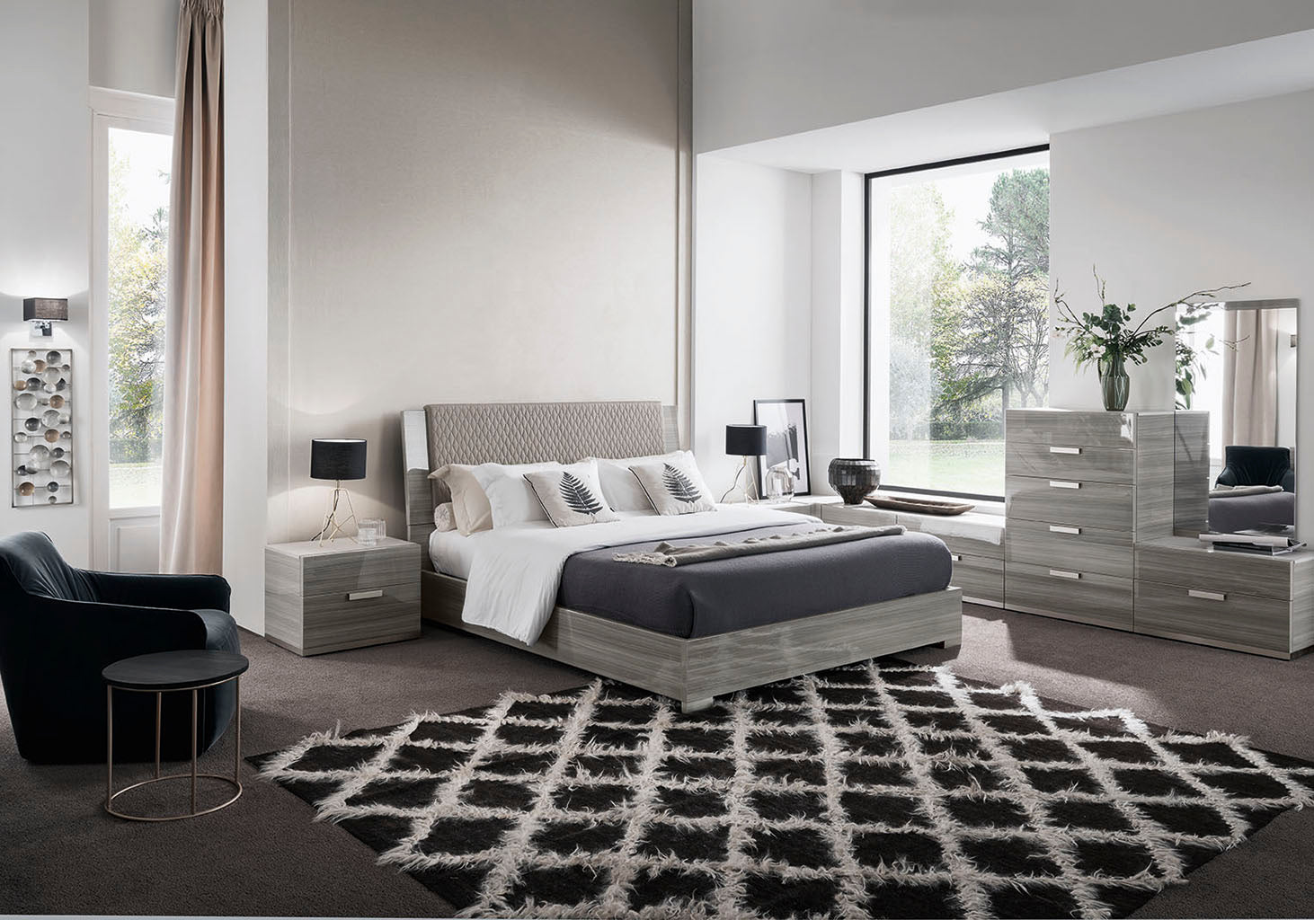 In addition to the bed in different sizes, the Iris collection includes a dresser, bedside tables, tall chest of drawers, mirror, vanity unit and wardrobes. All complements can be ordered separately or as a composition, to furnish your whole bedroom.