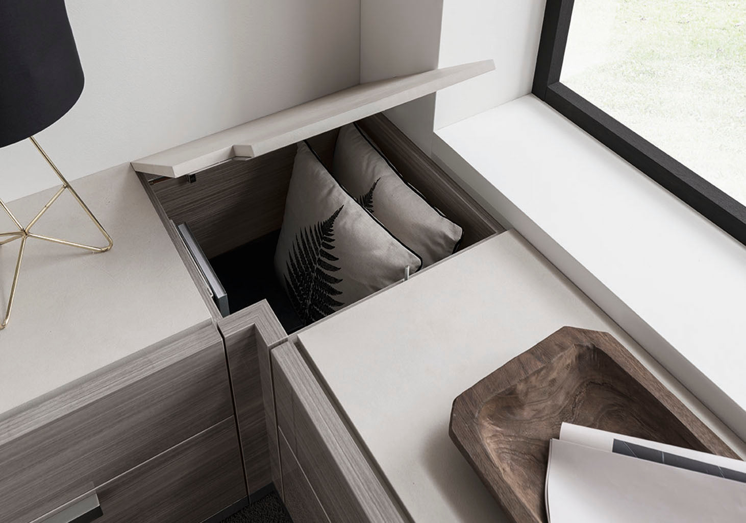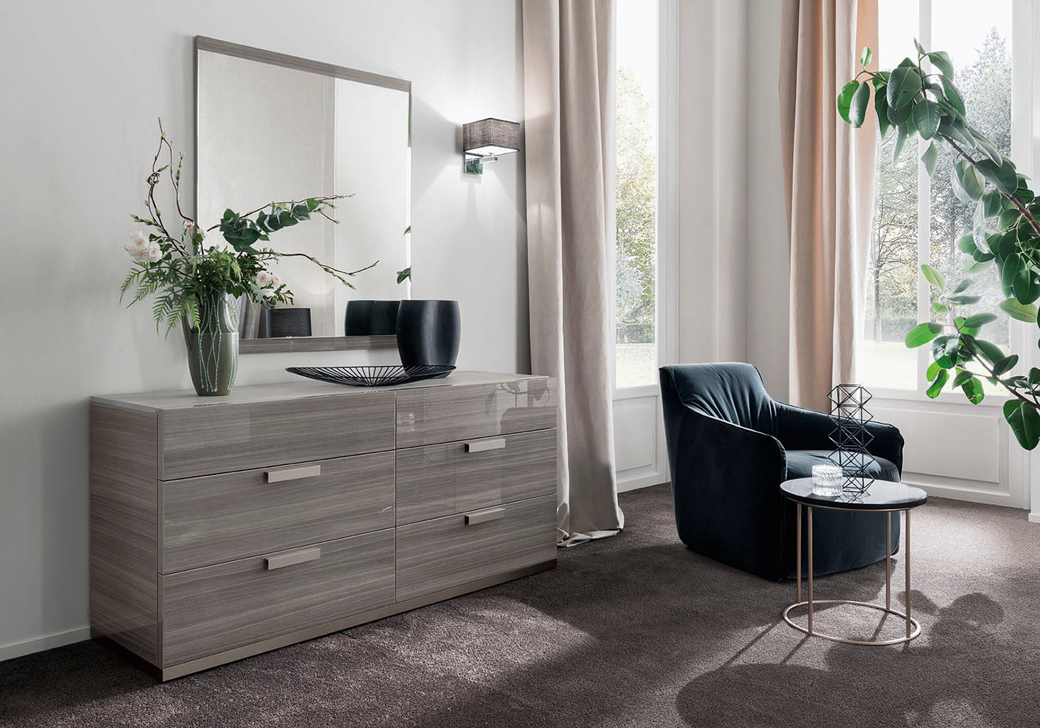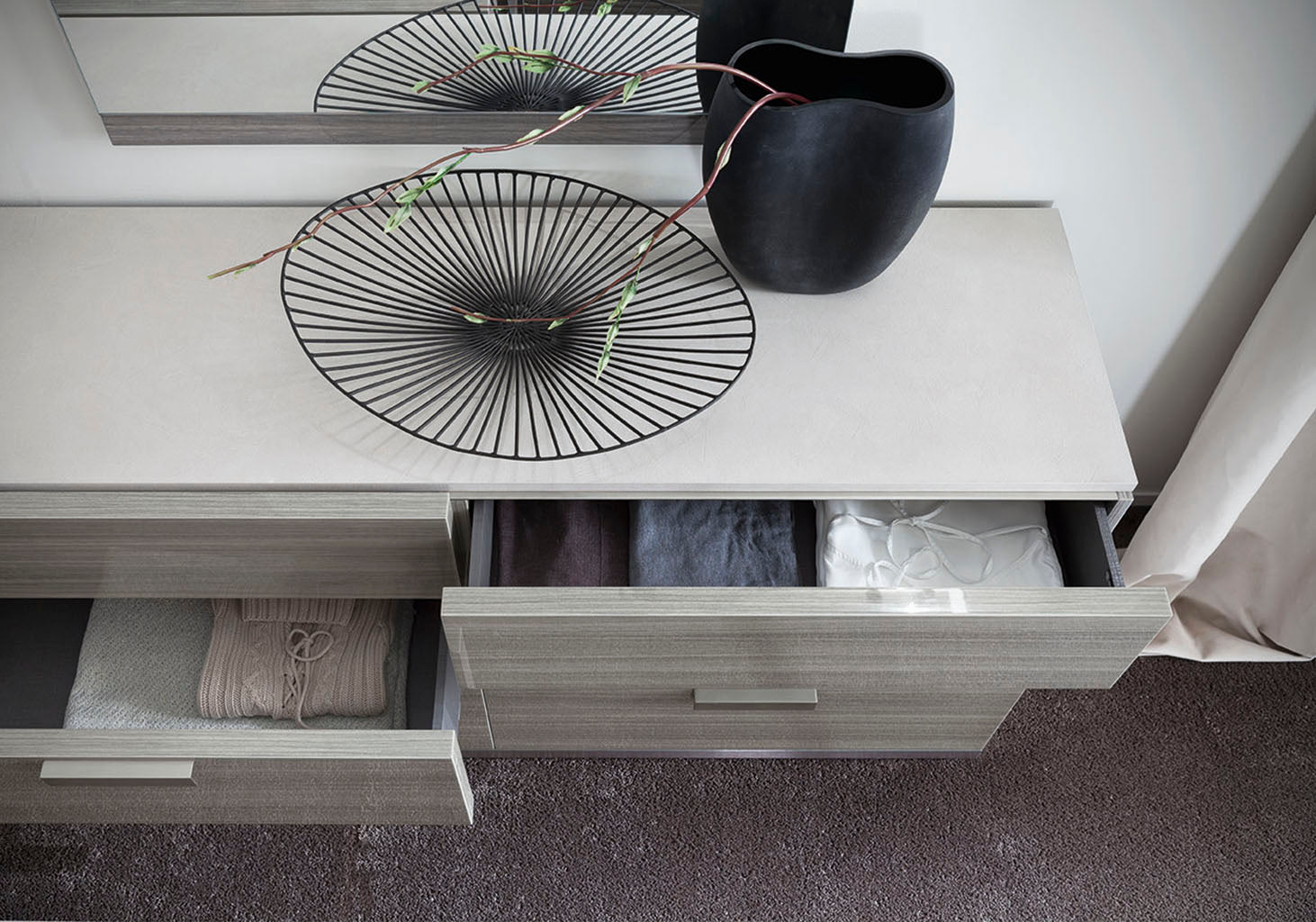 Iris is Alf Italia’s modular collection made up of bed, dresser, bedside tables, tall chest of drawers, mirror, vanity unit and wardrobes.