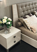 In addition to the bed in different sizes, the Mont Blanc collection includes a dresser, bedside tables, tall chest of drawers, mirror and wardrobes. All complements can be ordered separately or as a composition, to furnish your whole bedroom.