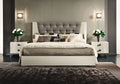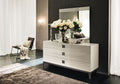 Mont Blanc high gloss finish defines the style of this collection made up of a bed, dresser, bedside tables, tall chest of drawers, mirror and wardrobes.