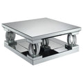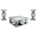 | • Contemporary coffee table set with a glamorous design • Includes mirrored surfaces for a sleek, reflective look • Sculptural oval-shaped supports create a dynamic aesthetic • Rhinestone accents add sparkle and modern sophistication • Coffee table features a spacious 40-inch square top • Perfect for elevating living spaces with modern luxury |