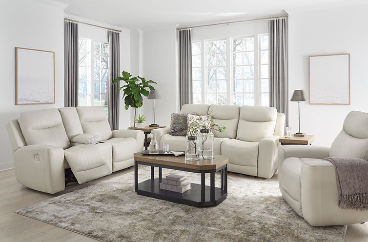 Experience modern comfort with the Ashley U59505 Mindanao Power Sofa, Loveseat, and Recliner set. Designed for style and relaxation, this set features genuine leather in high-contact areas, paired with expertly matched faux leather for durability.