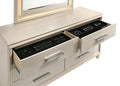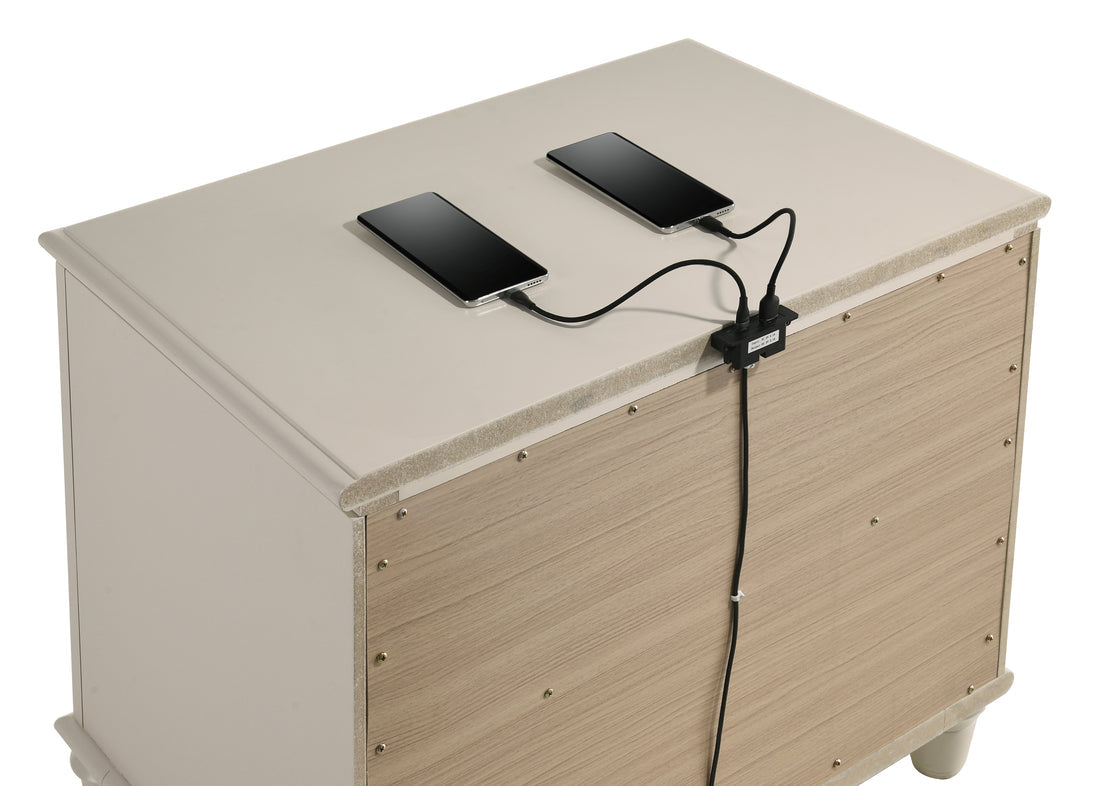 Elevate your sleep space with the B6650 Aviana bedroom set, featuring a luxurious Cappuccino Foam upholstered headboard paired with an illuminated mirror and LED lighting for ambiance and functionality. The integrated storage bed maximizes space while eliminating boxspring requirements, while the coordinating nightstand offers dual charging ports—USB and Type C—to keep your devices powered through the night. Refined wooden bun-feet and smooth ball bearing glides deliver both elegance and seamless mobility. Textured grain-embossed drawer fronts add sophisticated visual depth. Complete bedroom comfort designed for the modern lifestyle.