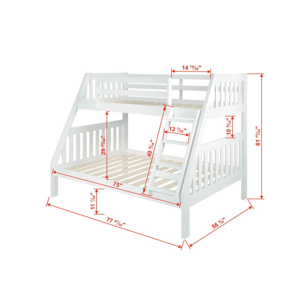 DONCO 1018 TWIN/FULL MISSION BUNK BED WHITE