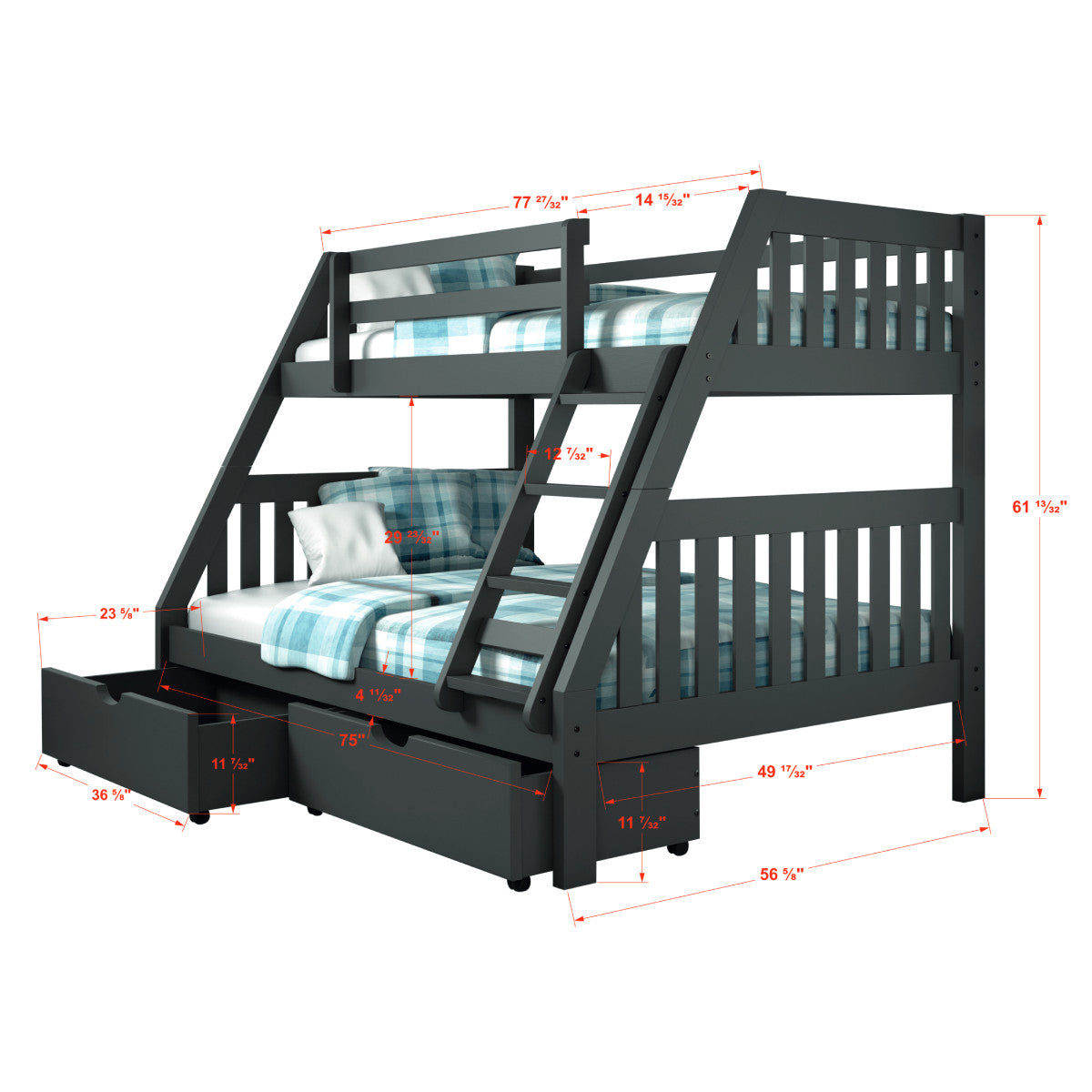 Description: The classic mission design of this twin over full bed has a grown-up appeal for your maturing child. The dark grey finish pairs well with any décor. The solid wood construction of this bunkbed provides outstanding durability.