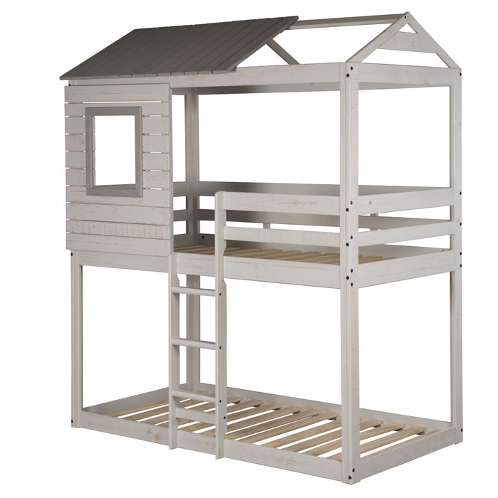 Donco 1370 Twin/ Twin Deer Blind Bunkbed Rustic Light Grey with Green Camo Tent Kit