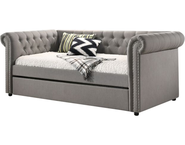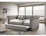 This Ellie Daybed by Crown Mark features button tuffted, nailhead trim, a smooth dove gray finish for a beautiful, timeless look. This charming daybed will certainly impress family and friends! Boasting Dove Gray finish, this daybed is a chic addition to your master suite or guest bedroom. This bed is beautifully designed. Use of fine quality wood further adds strength and durability to this bed.