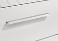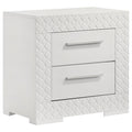| • Contemporary five-piece eastern king bedroom set • White high gloss finish with 3-dimensional diamond tile emboss • Bed features touch LED light in the headboard • Low-profile design for a sleek, modern look • Constructed from solid hardwood and engineered wood |