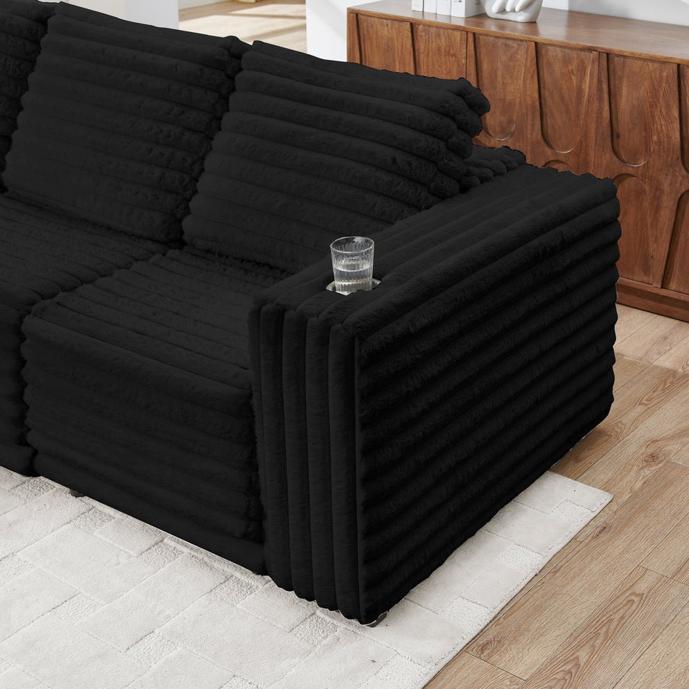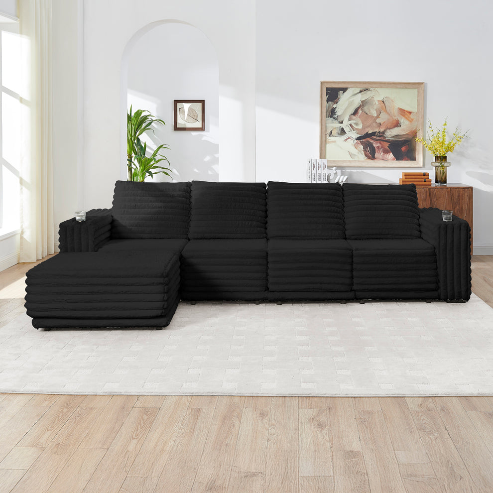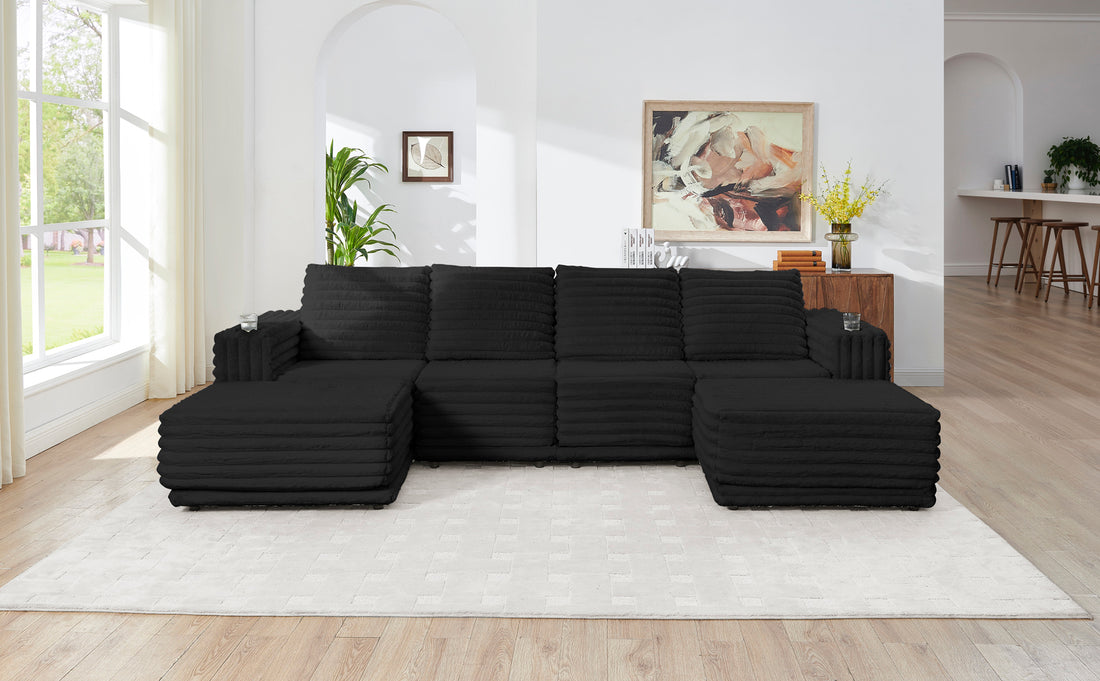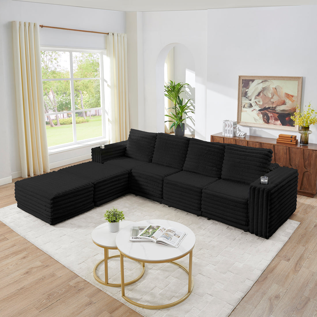 Transform your living room with the S101 Nuve sectional—a modular design that adapts to any space. This versatile set includes one right chair, one left chair, two armless chairs, and two ottomans, letting you arrange and rearrange to match your lifestyle. Built-in cup holders keep beverages within reach, while the compressed construction makes setup effortless. Whether you're creating an intimate conversation area or sprawling lounge, the Nuve grows with your needs. Comfort meets flexibility in cream upholstery that complements any décor.