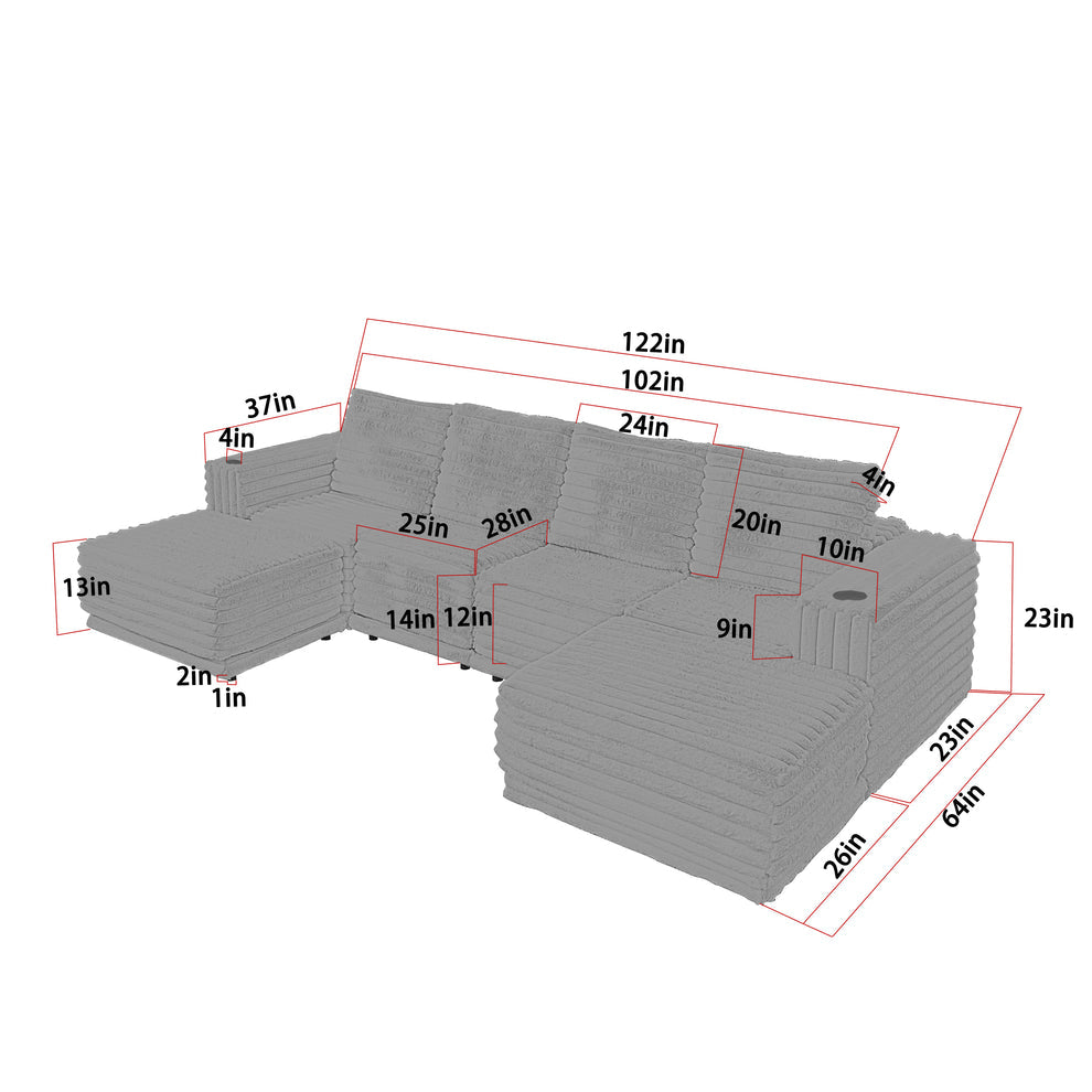 Transform your living room with the S101 Nuve sectional—a modular design that adapts to any space. This versatile set includes one right chair, one left chair, two armless chairs, and two ottomans, letting you arrange and rearrange to match your lifestyle. Built-in cup holders keep beverages within reach, while the compressed construction makes setup effortless. Whether you're creating an intimate conversation area or sprawling lounge, the Nuve grows with your needs. Comfort meets flexibility in cream upholstery that complements any décor.