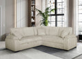 Introducing the S3662 sectional from the Neeha Collection by New Era Innovations in a stylish cream hue. Featuring a modern design crafted with soft corduroy fabric, this comfortable sectional includes a convenient pullout bed and three matching pillows, making it an ideal addition to your home for both relaxation and functionality.