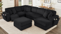 The S3663 Rana sectional brings modern comfort and convenience to your living space. This sleek black reclining sectional features a power recliner on the left side with hidden storage underneath, while the right side includes a concealed cupholder. Both sides are equipped with wireless charging, USB ports, Type C connections, and power outlets—keeping your devices charged and within reach. Perfect for movie nights, relaxation, or entertaining guests, this sectional combines luxury seating with smart technology integration for the contemporary home.