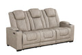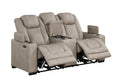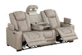Discover the S4306 Rima collection by New Era Innovations—where sophisticated light greyish/beige tone styling meets intelligent functionality. Built with advanced Air Leather, these pieces deliver exceptional durability and breathability for comfort. The sofa transforms your living space with power reclining, a convenient drop-down table featuring cupholders, USB charging, wireless charging capability, ambient reading light, and hidden storage arms. The loveseat combines power reclining with a practical console, cupholders, USB access, and storage solutions. The matching recliner offers power reclining, USB connectivity, and cupholders integrated into storage arms. Every element is designed to elevate your relaxation experience while keeping everything you need within arm's reach.