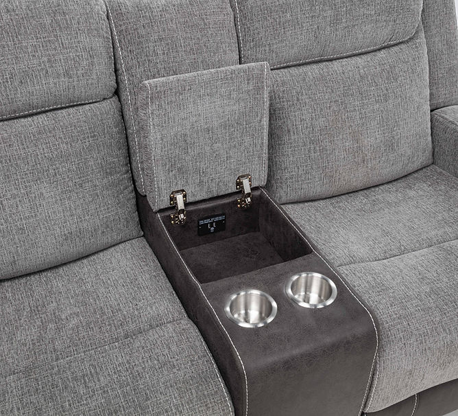 Loveseat - Manual Glider Reclining, Console with Stainless Steel Cup Holders, USB Port