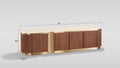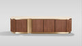 The Valente TV Console brings sophisticated style and practical storage to your entertainment space. Crafted with a rich walnut veneer and topped with elegant artificial stone, this console features brushed gold stainless steel accents that add a touch of luxury. Four spacious doors with convenient push-to-open technology provide easy access to your media equipment and accessories, while adjustable shelves let you customize the interior layout. A discreet wire hole with grommet on the back panel keeps cables organized and hidden from view. Perfect for modern living rooms seeking both beauty and functionality.